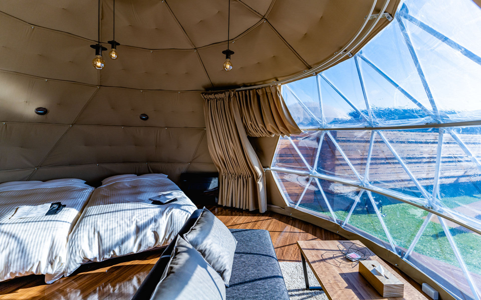 1日2組限定のドームテントではカップルやご夫婦ではもちろん、